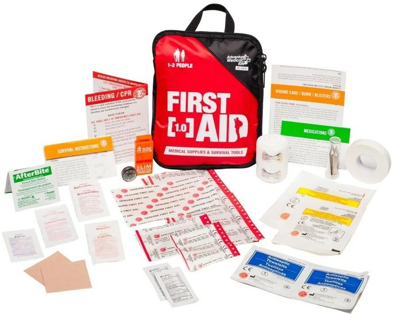 The Adventure First Aid 1.0 contains supplies to treat cuts & scrapes, sprains, insect bites, headaches, muscle aches, and allergic reactions. AMK’s exclusive Easy Care First Aid System organizes items by injury with injury-specific instruction cards to help anyone quickly and confidently give first aid.