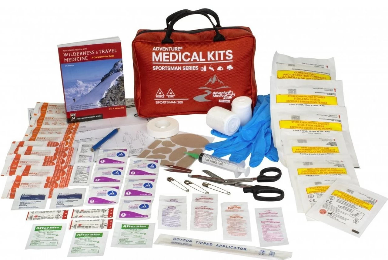 The AMK Medical Sportman 200 Kit contains enough first aid supplies to last a group of four for up to four days. The reflective sign makes it easy to find in the dark while the external kit map and Easy Care Organization System, and clearly labeled pockets, let you quickly find what you need in an emergency.