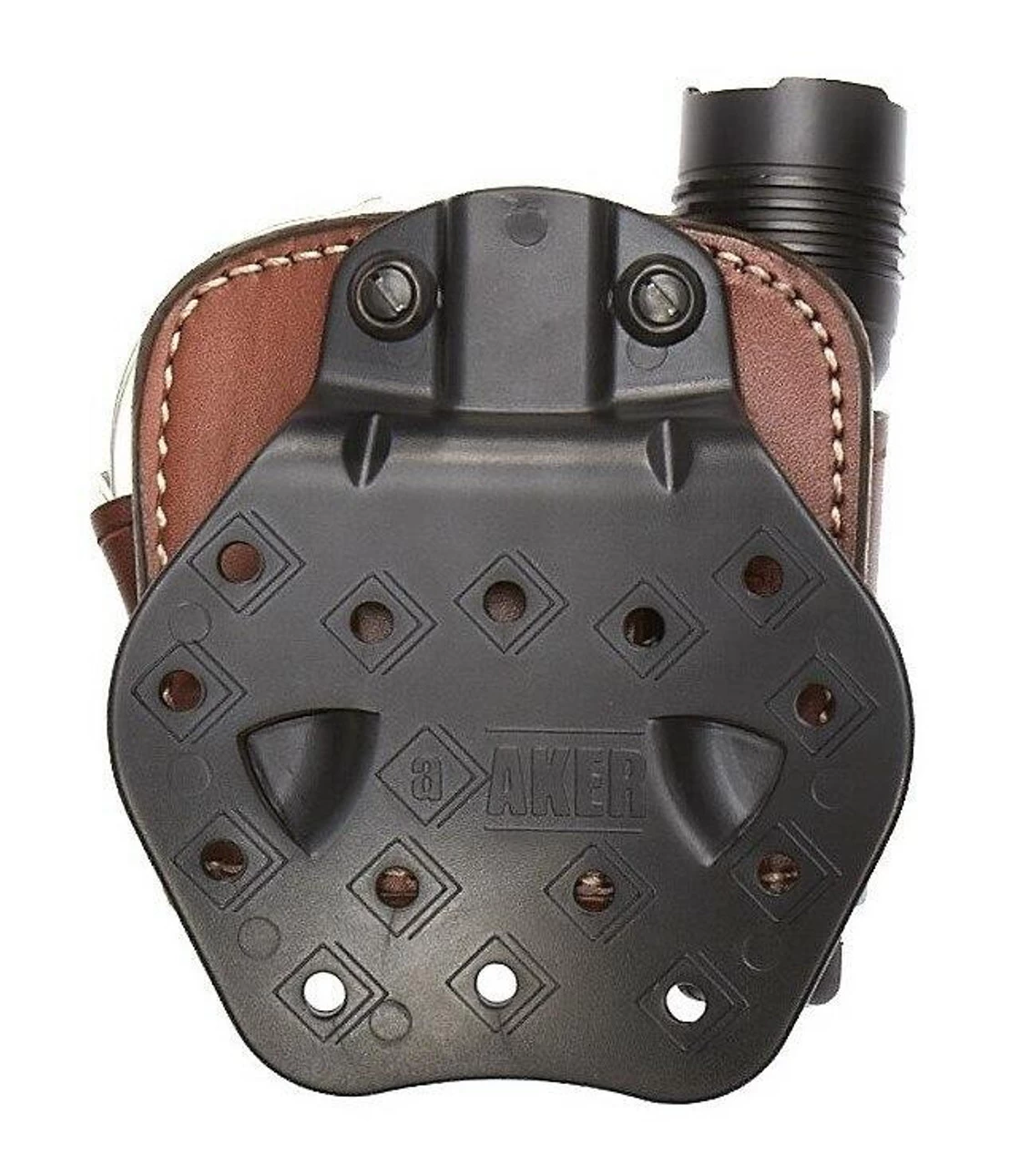 The Aker Model 618 D.M.S. Paddle Light & Cuff Case conveniently combines a SureFire 6P or Streamlight Scorpion/Strion flashlight and handcuffs in an optional quick on/quick off paddle unit.