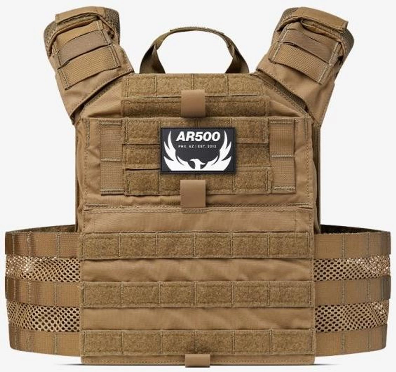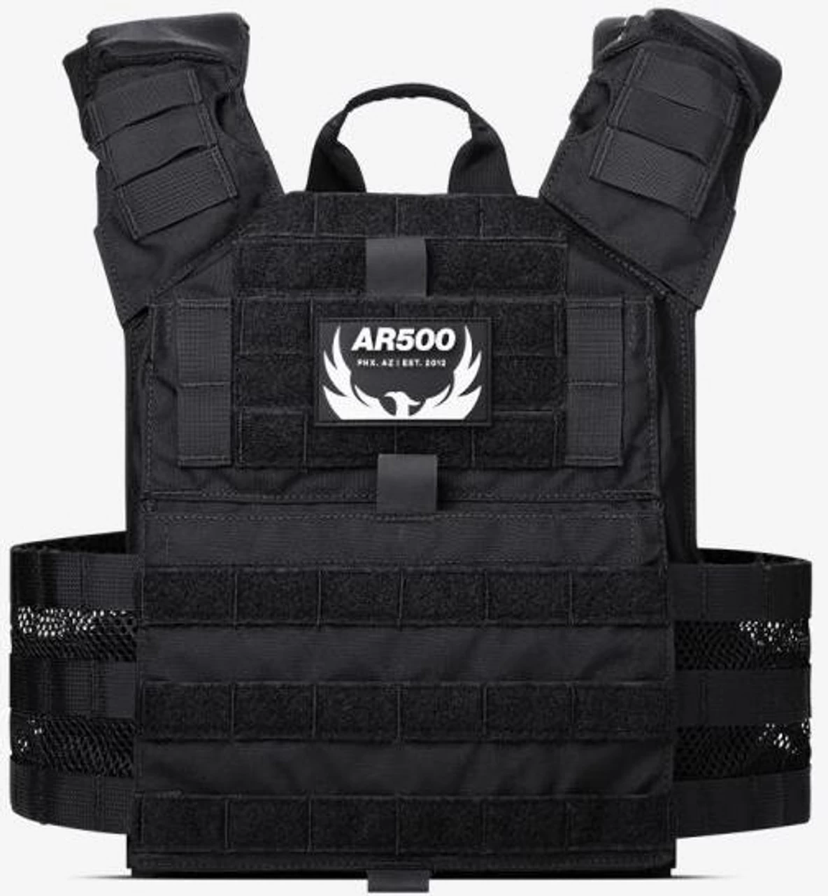 AR500 Valkyrie Plate Carrier is made of a durable and lightweight Cordura 500D Nylon, with bar-tack stitching at all stress points and quick-release buckles with laminated Nylon protective covers. The collapsible handle makes it easier for transportation and can be moved out of the way with no trouble when wearing the carrier. Additional features include a fully adjustable cummerbund for a tight fit, generously sized Velcro ID Panels and dual admin pouches, compatible with Kangaroo magazine pouch inserts.