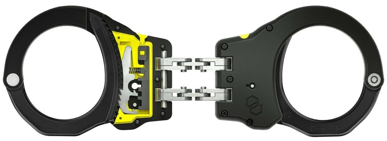 - Forged aluminum frame: Forged from 7075 T6 ordnance-grade aluminum, Ultra Cuff frames are rigid and incredibly strong, yet lightweight. Forging-as opposed to the stamped steel parts found in other restraints-also eliminates rough or sharp edges; the smooth, rounded Ultra Cuff frame is more ergonomic, and safer for both officer and subject.