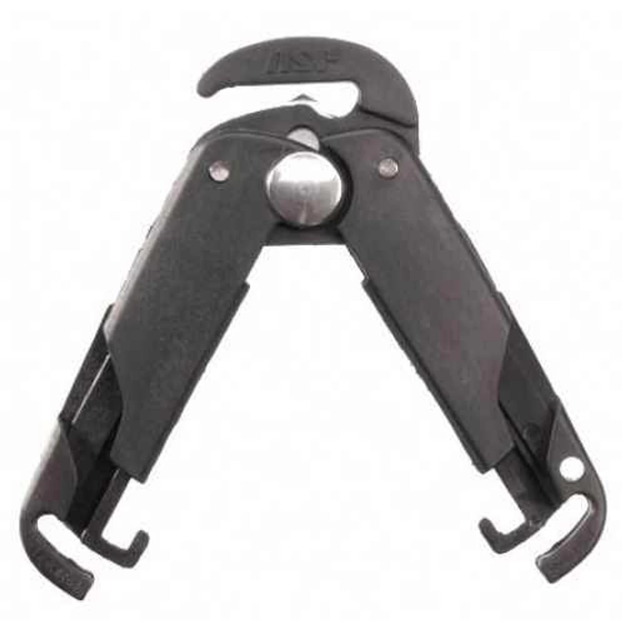The ASP Products Scarab Tri-Fold Cutter is an easily carried, lightweight cutter specifically designed for disposable restraints that employs compound leverage that will safely sever restraints that have been applied to a subject without presenting a weapon that can be used against the officer. A split ring is included for convenient attachment to a keyring or tactical bag. The Scarab cutter snaps quickly onto your keyring, and easily removes the Tri-Fold disposable restraints using compound leverage.