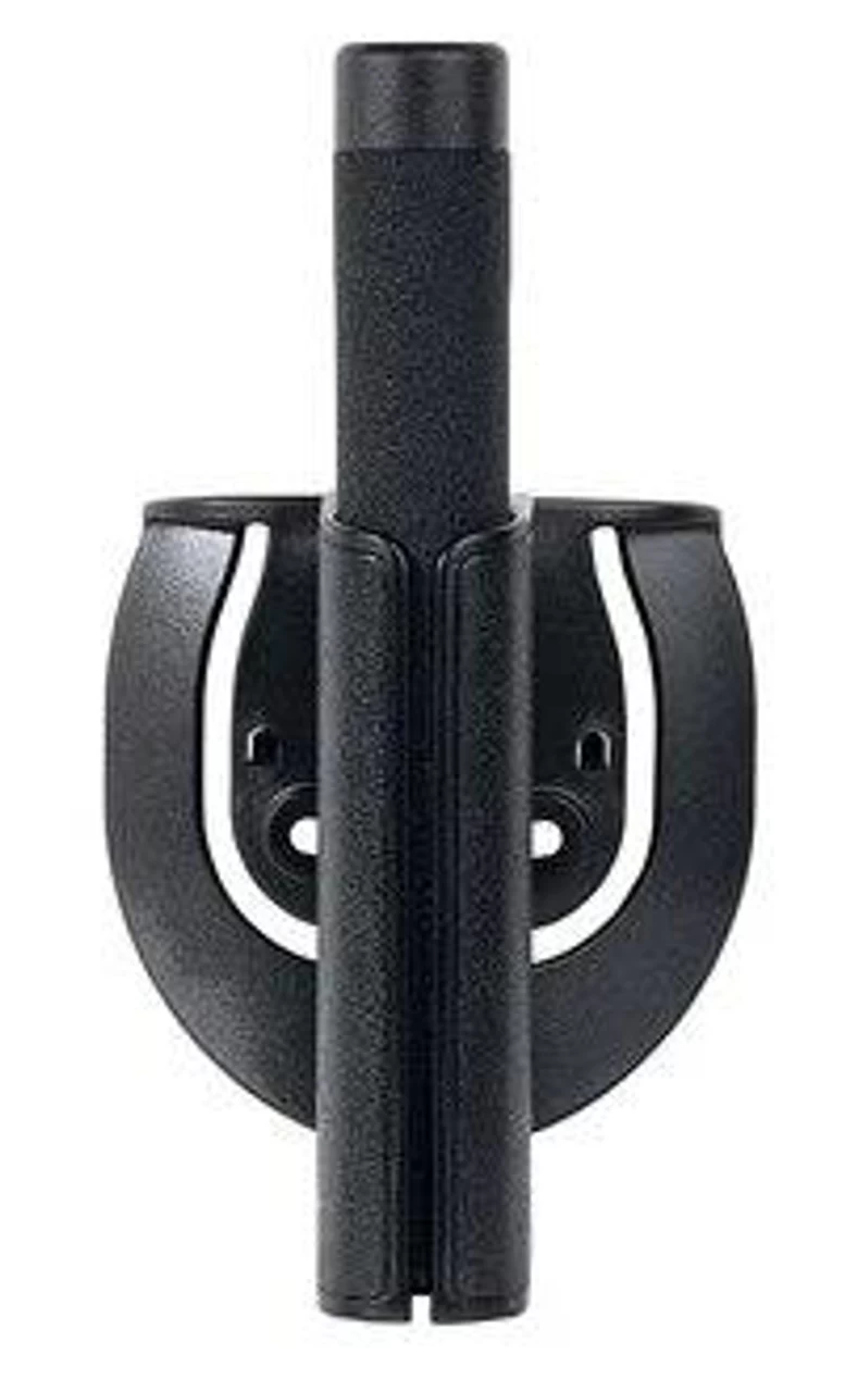 Like its paddle-style gun holster cousins, this baton scabbard is designed to be securely carried over a regular dress belt, and easily attached or removed without having to remove the belt (it’s a particular favorite among plainclothes investigators and undercover officers for these reasons). The scabbard provides secure retention and rapid presentation of an ASP Friction Loc Baton whether the baton is in the collapsed or expanded position and can be worn straight or at an angle on either the strong or reaction side.