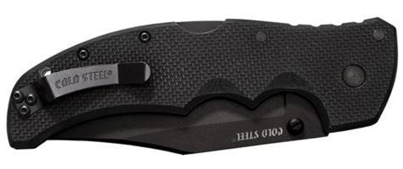 Cold Steel is famous for raising the bar in the knife industry and our Recon 1 tactical folders are setting a standard that’s hard to beat. Why? Because they are as tough as nails and will cut like a chain saw! Every facet of their construction has been over engineered to make them as strong, durable and effective as humanly possible. The blades are made out of imported Japanese AUS 8A stainless steel that’s been vacuum heat treated and sub-zero quenched and the handles feature G-10 laminate scales artfully contoured and scalloped for a terrific non slip grip. Plus, they are held together by the latest in high strength mechanical fasteners and further anchored by a 6061 heat-treated spacer. To complement their super tough blades and handles they are equipped with our revolutionary Tri Ad lock, which practically precludes lock failure.