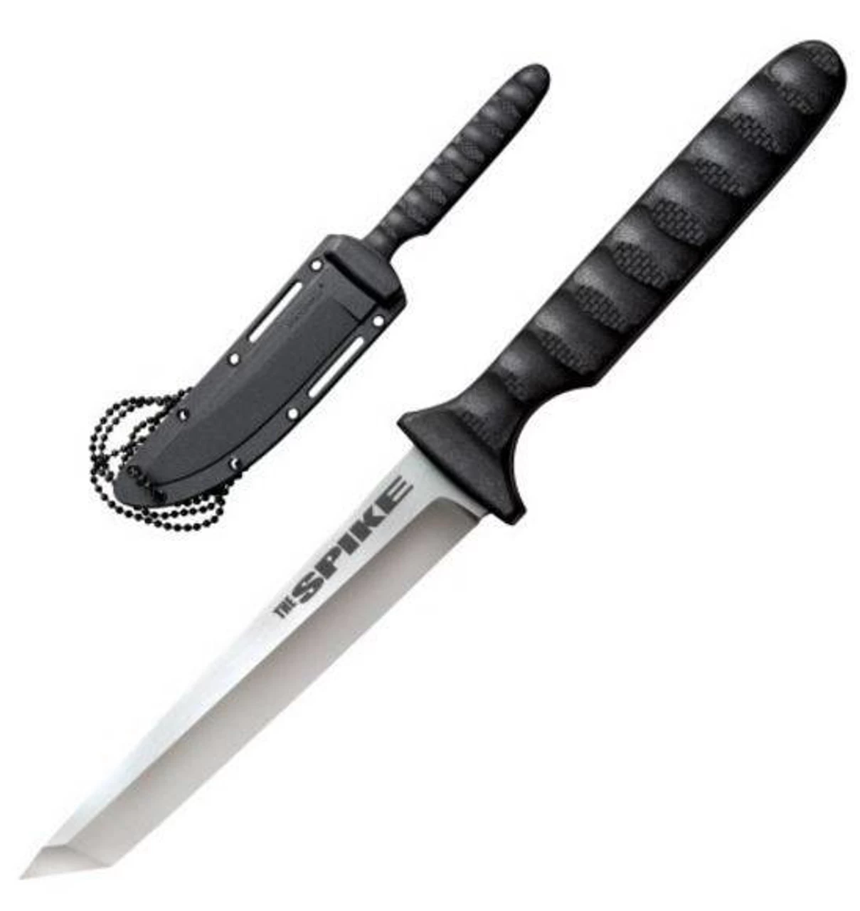 The Cold Steel Tanto Spike are slim, light and super-tough. Their razor sharp zero ground blades are complemented by heavily scalloped textured handle scales that offer a comfortable and secure grip. The Spike’s ergonomic handles feature Integral quillons that provide a safe stop for index finger and thumb while deeply textured and sculpted Griv-Ex provides excellent positive traction even when your hands are cold, wet and slippery. They offer all the strength of a one-piece solid steel construction while still being light enough to carry all day without fatigue.
