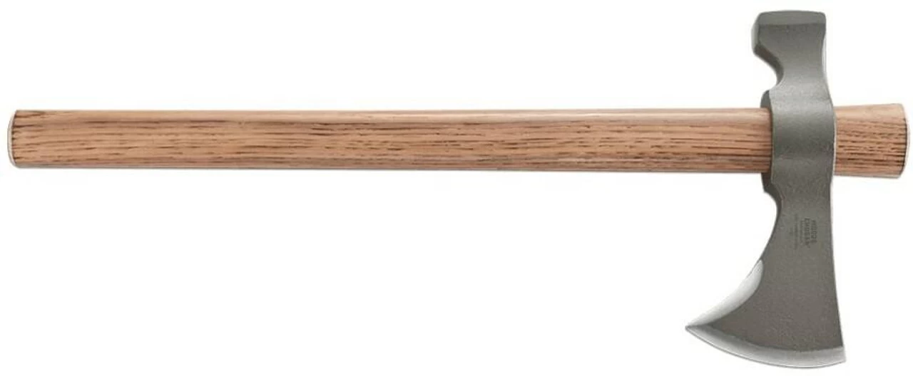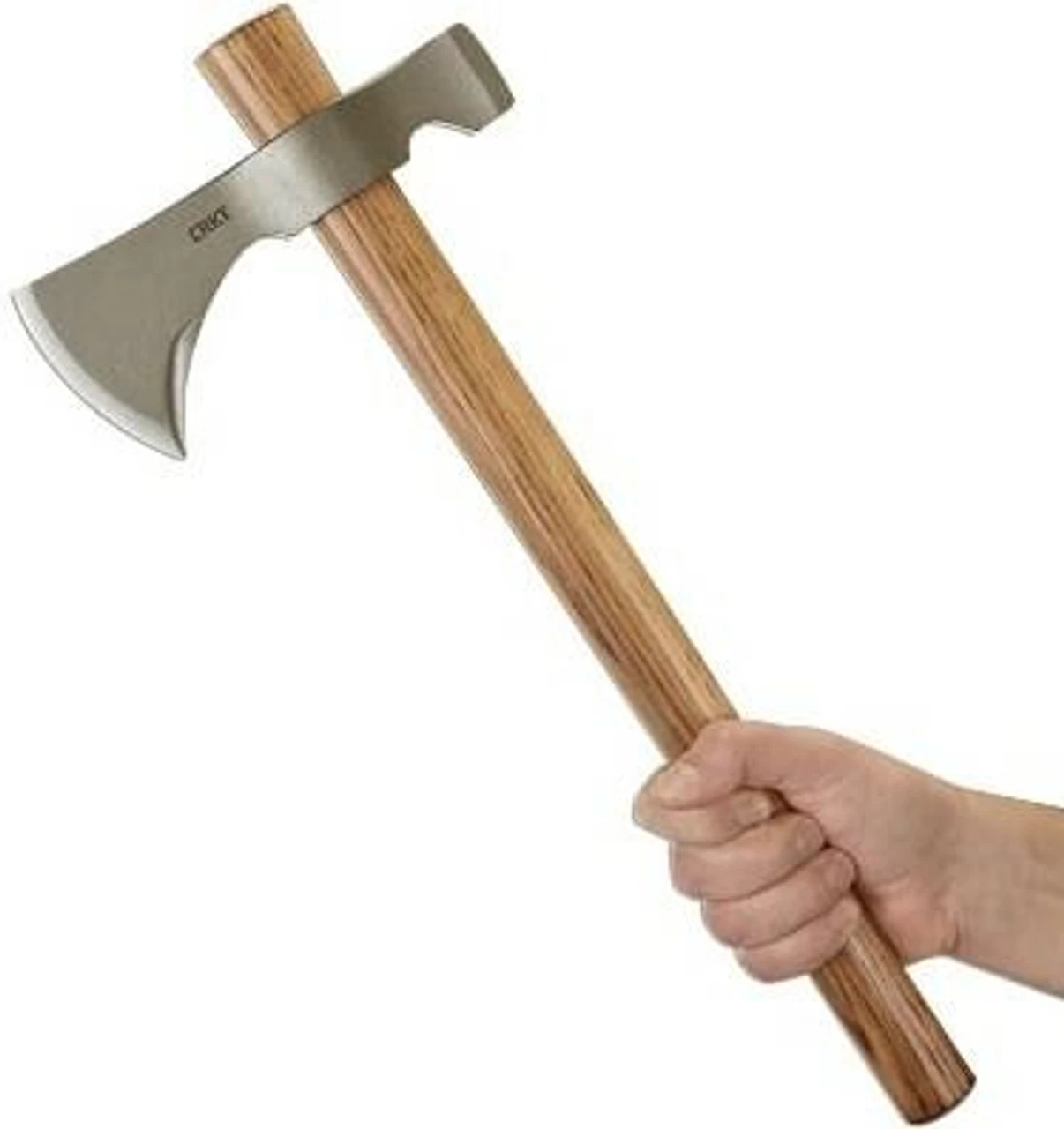 The CRKT Woods Chogan Tomahawk two-handed camp axe with a hickory handle, hot forged blade, and hammerhead will make your life easier when you’re off the grid. The Woods Chogan is made from a solid block of 1055 carbon steel that is hot forged into a rock-solid head that features a hammer finish. The primary and secondary edge bevels that are flat ground, cuts through timber like a certain dam building critter. Flip it around to use the additional hammer end to nail those tentpoles secure into the ground. The thick wood handle is made in the USA from Tennessee hickory. It’s comfortable in hand and sealed with a lacquer coat that adds durability.