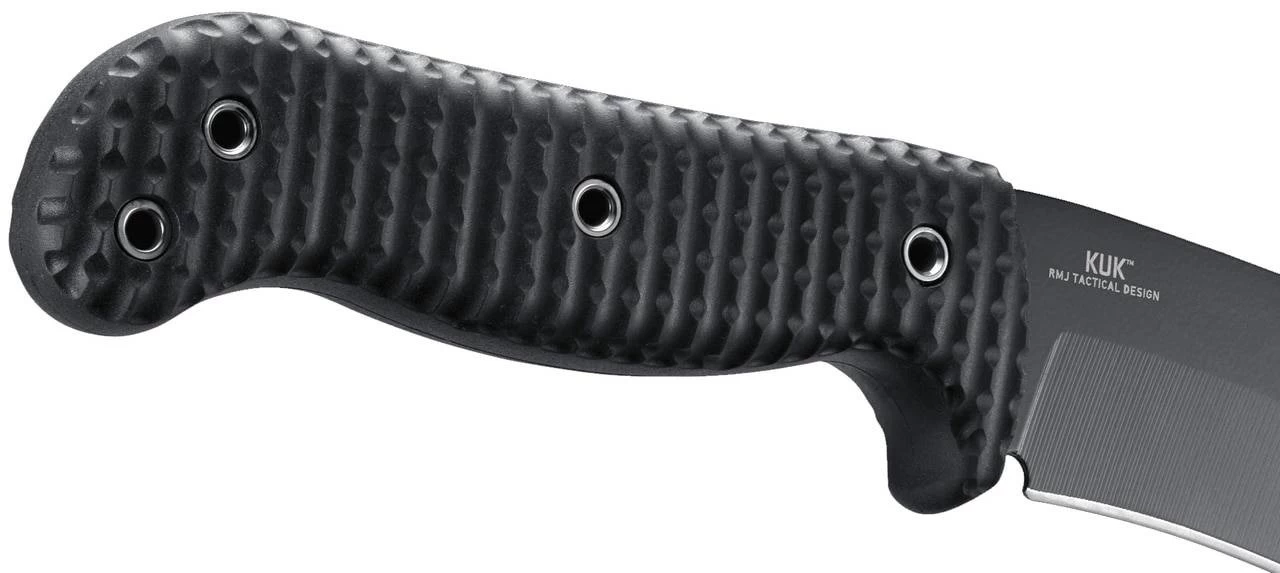 The CRKT KUK Kukri Blade Knife is equipped with a full tang recurved blade and made with carbon steel and a black powder coated finish that really shows off this blade in all its glory. This knife is balanced out by a tough glass-reinforced nylon handle, It’s a beautiful combination of form and function. This knife can be tucked in its woven polyester sheath, the additional paracord making for super versatile carry options.