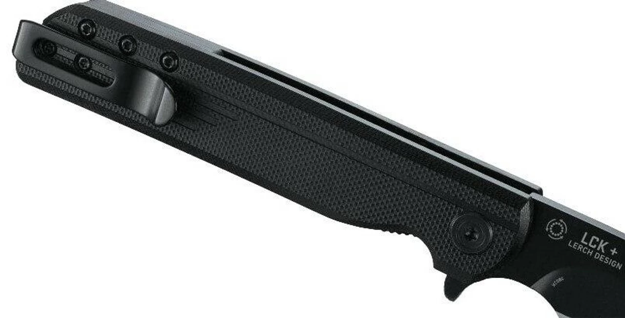 The CRKT LCK Tanto Blackout Assisted Folding Knife is a lightning fast, compact, ready for anything everyday carry folding knife that is built around the Assisted Opening innovation for extremely fast deployment speeds. Designed by Matthew Lerch of Sussex, Wisconsin with a sleek, linear design, the formidable drop point stainless steel blade meets the glass-reinforced nylon handle in what looks like a nearly seamless transition. The grooves on the handle elevate the grip in rain, mud, and grease. Built with Assisted Opening, simply nudge the blade open part way and the innovation activates, snapping it open at super high speed. The IKBS ball bearing pivot system makes for a smooth rotation and a liner lock keeps it solidly in place.