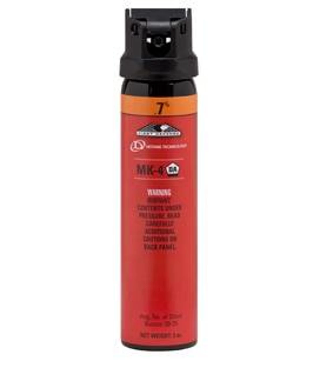 The MK-4 is an ideal size for patrol officers to wear on a duty belt and will deliver 20-25 short bursts of OC at an effective range of 10-12 ft. This .7% MC OC aerosol product utilizes a cone delivery method providing a wide spray pattern for easier target acquisition