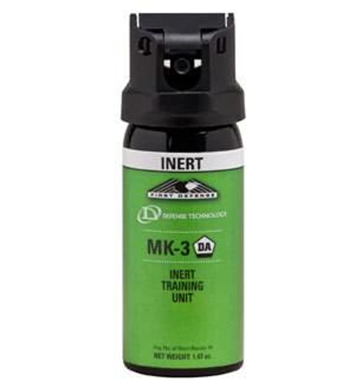 The Defense Technology Inert Training Unit Stream MK-3 provides the same functionality and targeting properties as active product duplicating the delivery system for training purposes. The MK-3 will deliver 10-12 short bursts of OC at an effective range of 10-12 ft. This inert aerosol product utilizes a stream delivery method providing a target-specific, strong concentrated stream for greater standoff.