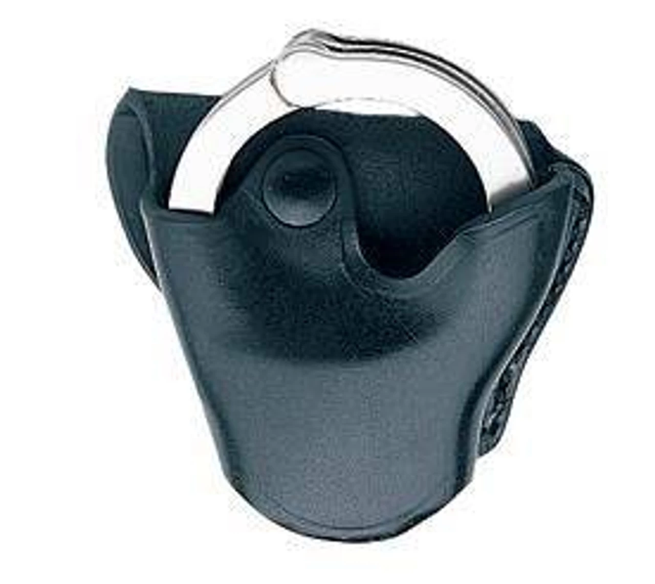 The DeSantis Open Top Handcuff Case securely accommodates standard handcuffs. The DeSantis Open Top Handcuff Case features a pull-the-dot snap for one direction access to your handcuffs.