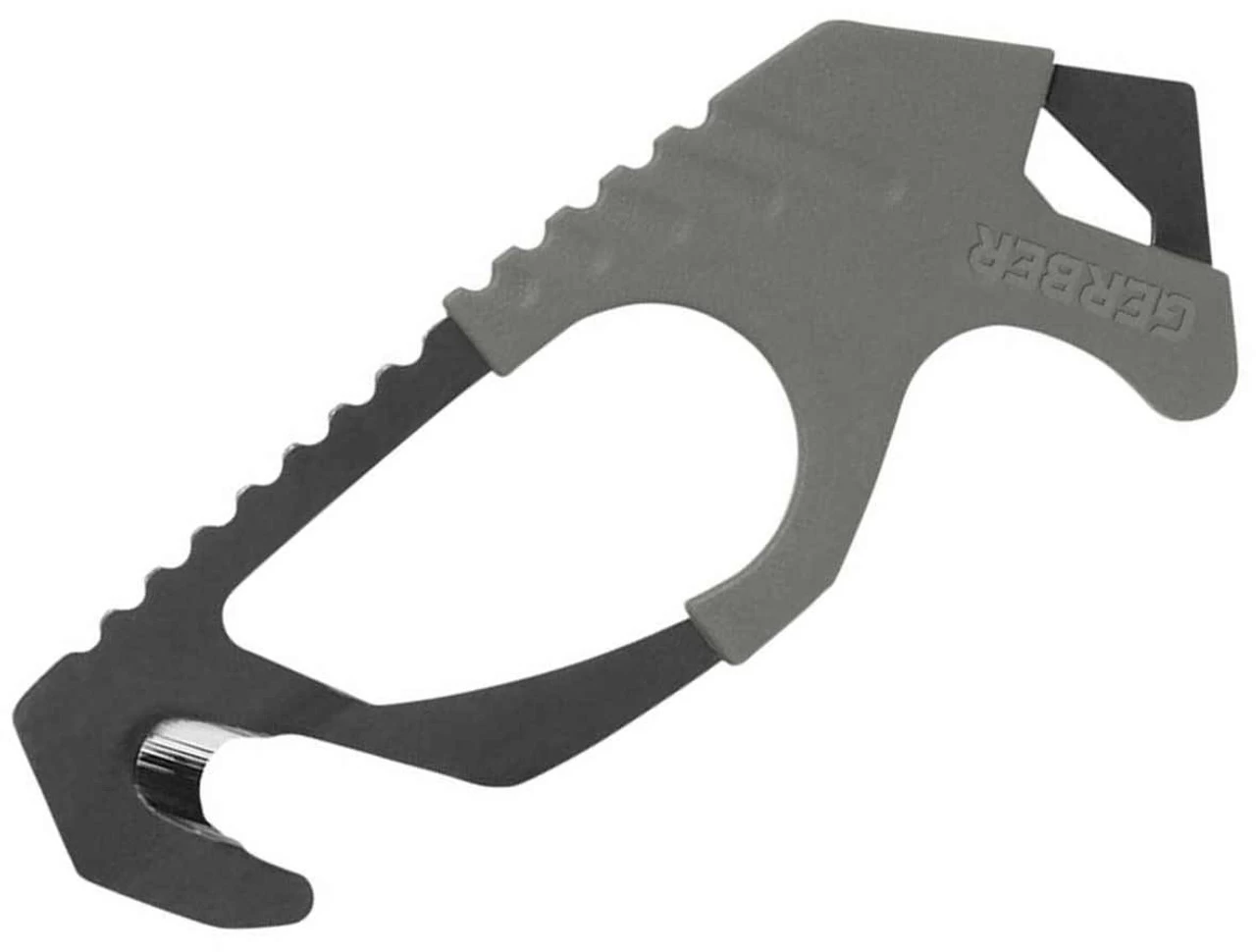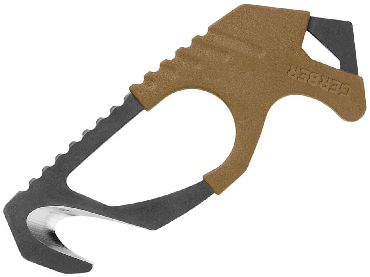 The Gerber Strap Cutter features an innovative design that creates a sharp cutting edge while shielding the user from potential harm. The 420HC steel hook knife features a sharp cutting edge for belts and cords while the molded rubber grip and finger hole add stability, and wrapping it all up with a glass breaker making this an effective tool for emergency situations.