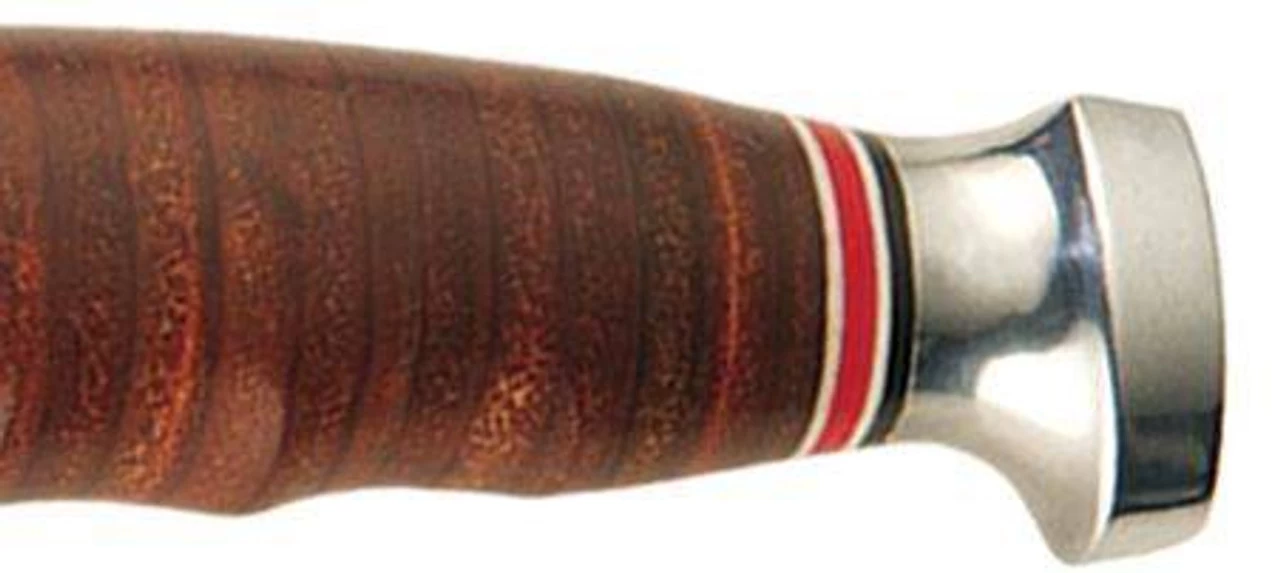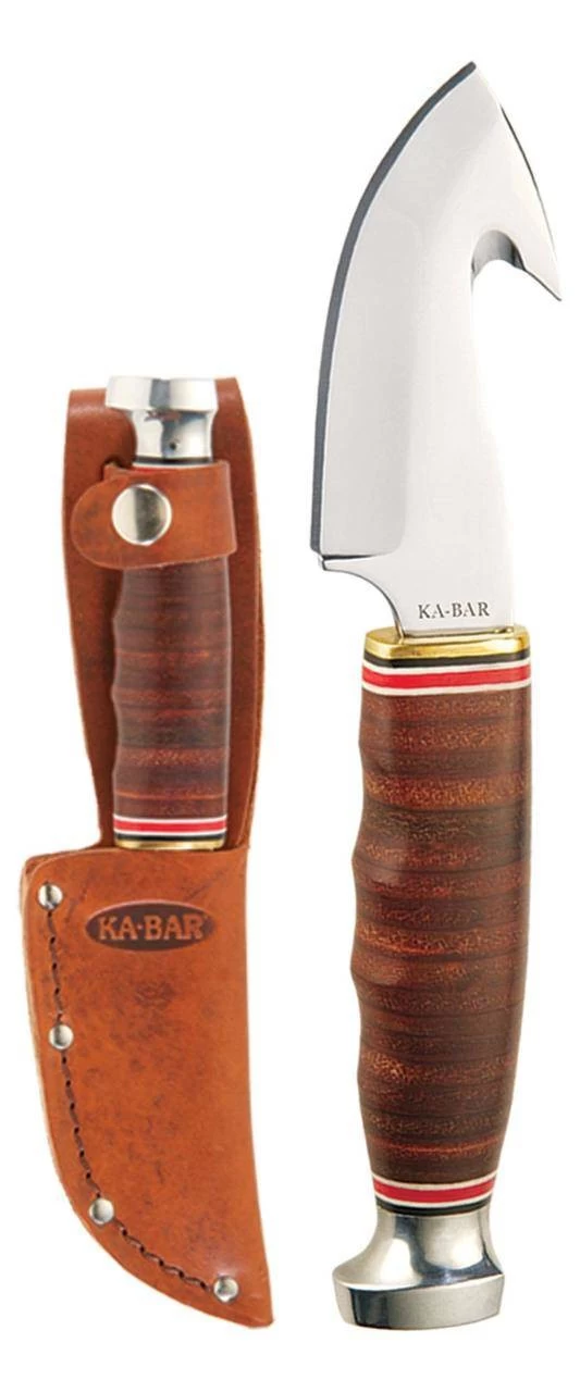 The Ka-Bar Leather Handled Game Hook Fixed Blade Knife is features a classically styled leather-handle. The Game Hook is a modern take on this classic style. Dressy enough for gift giving and practical for field use. Features a brass guard and aluminum butt cap. Plastic lined leather KA-BAR sheath included.
