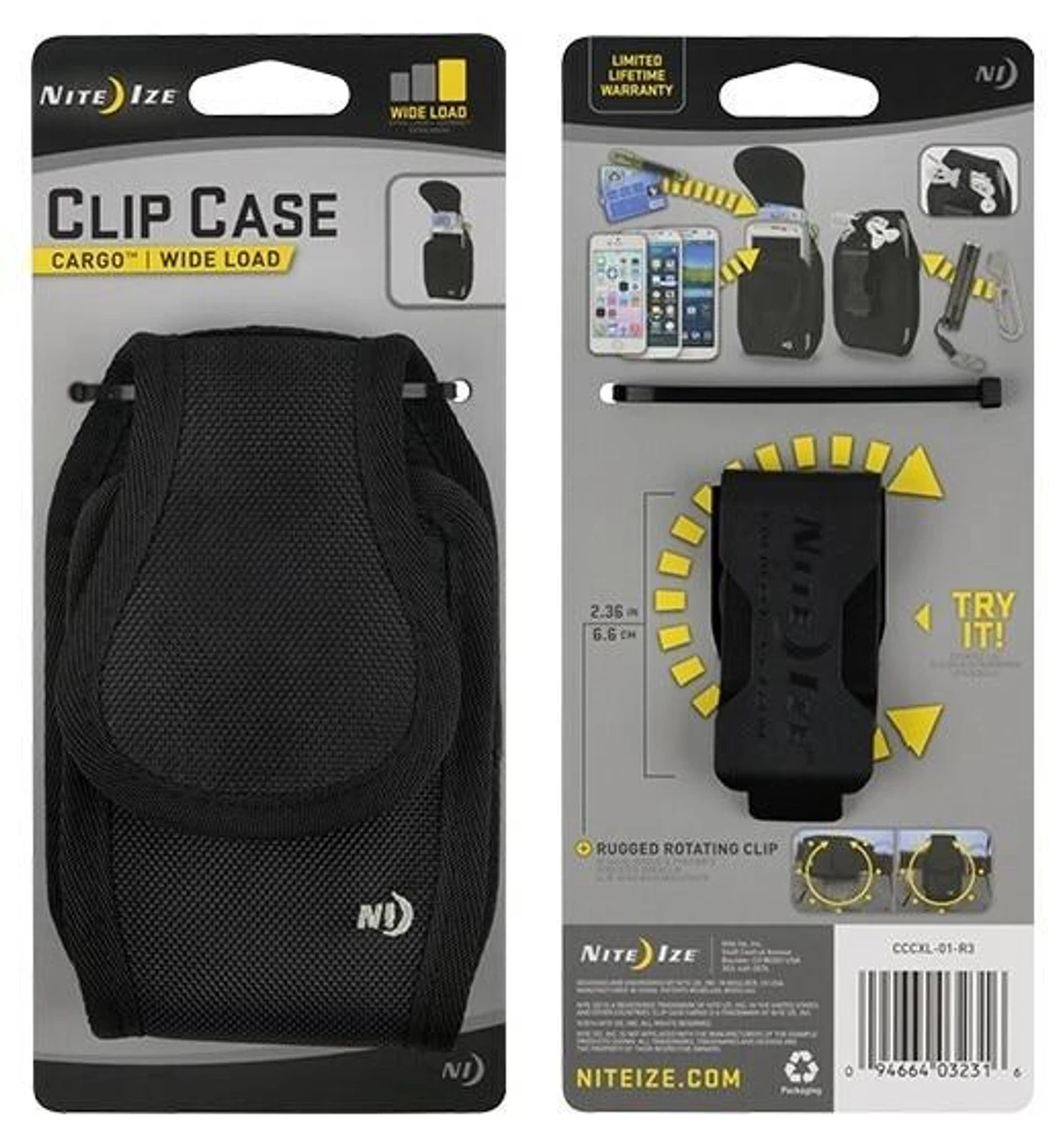 The Nite Ize Clip Case Cargo Universal Rugged Holster is a tough cell phone case for mobile devices with or without a form fit cases that absorbs shocks and shields from the elements. Made of extremely durable ballistic polypropylene and available in a wide range of universal sizes. Its patented flex-clip attaches securely over and under your belt, fully rotates for access at any angle, and even locks in eight different positions. Featuring internal pockets and an integrated pen loop, this ultra-functional mobile device case also holds your smaller items like ID, cash, and credit cards for extra convenience. The Tooth Ferry feature is added to keep your wireless headset or headphones safe and available. Absolutely perfect for those who work and play in rugged environments, and don’t want their phones to suffer for it. Perfect for the toughest work and hardest play, the Clip Case Cargo is an innovative accessory for high-tech devices in rugged environments.