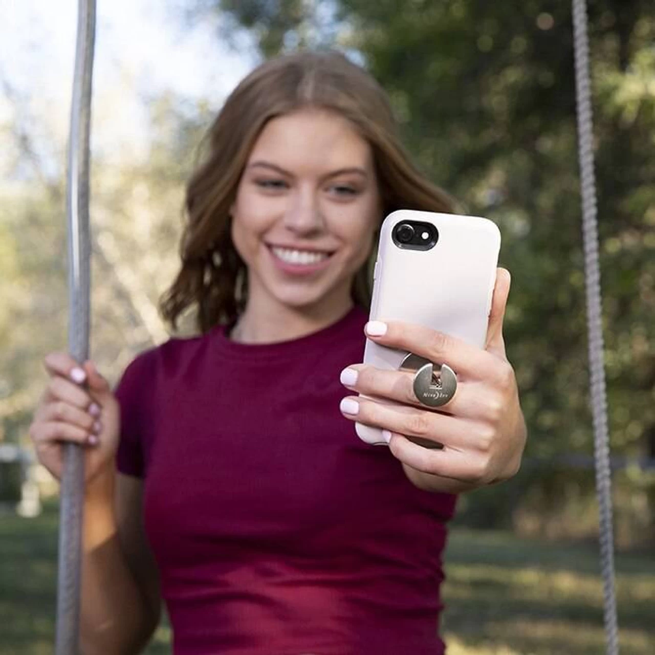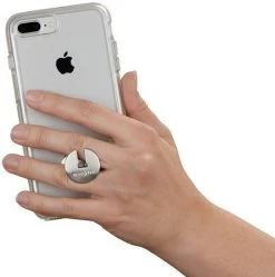 - Creates secure ergonomic grip for phones