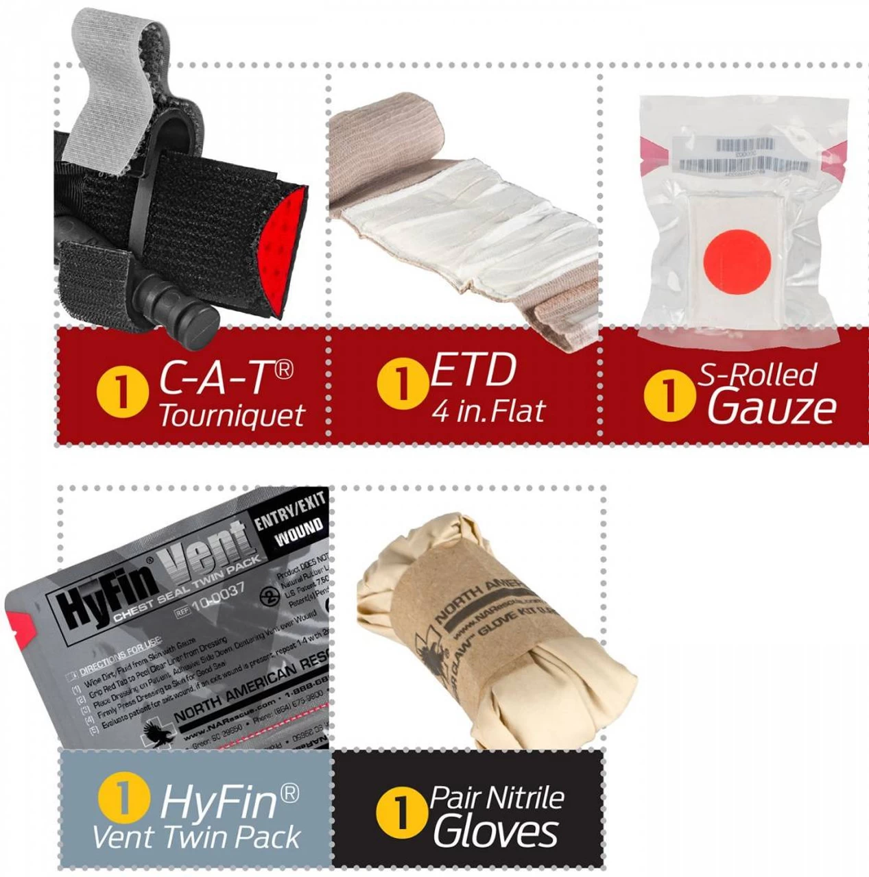 - Contains the essential basic life support equipment needed for self-aid/buddy-aid