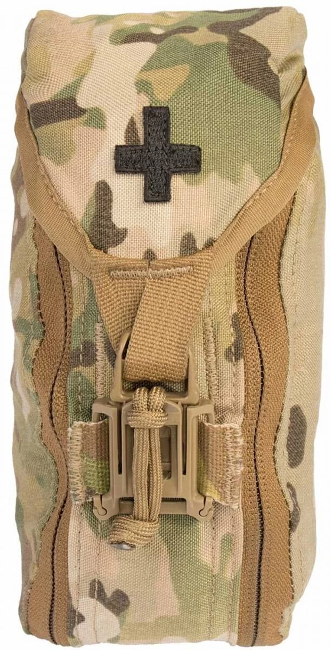 - Protective hood with quick latch release helps protect IFAK components and includes sewn in embroidered medical cross identifier