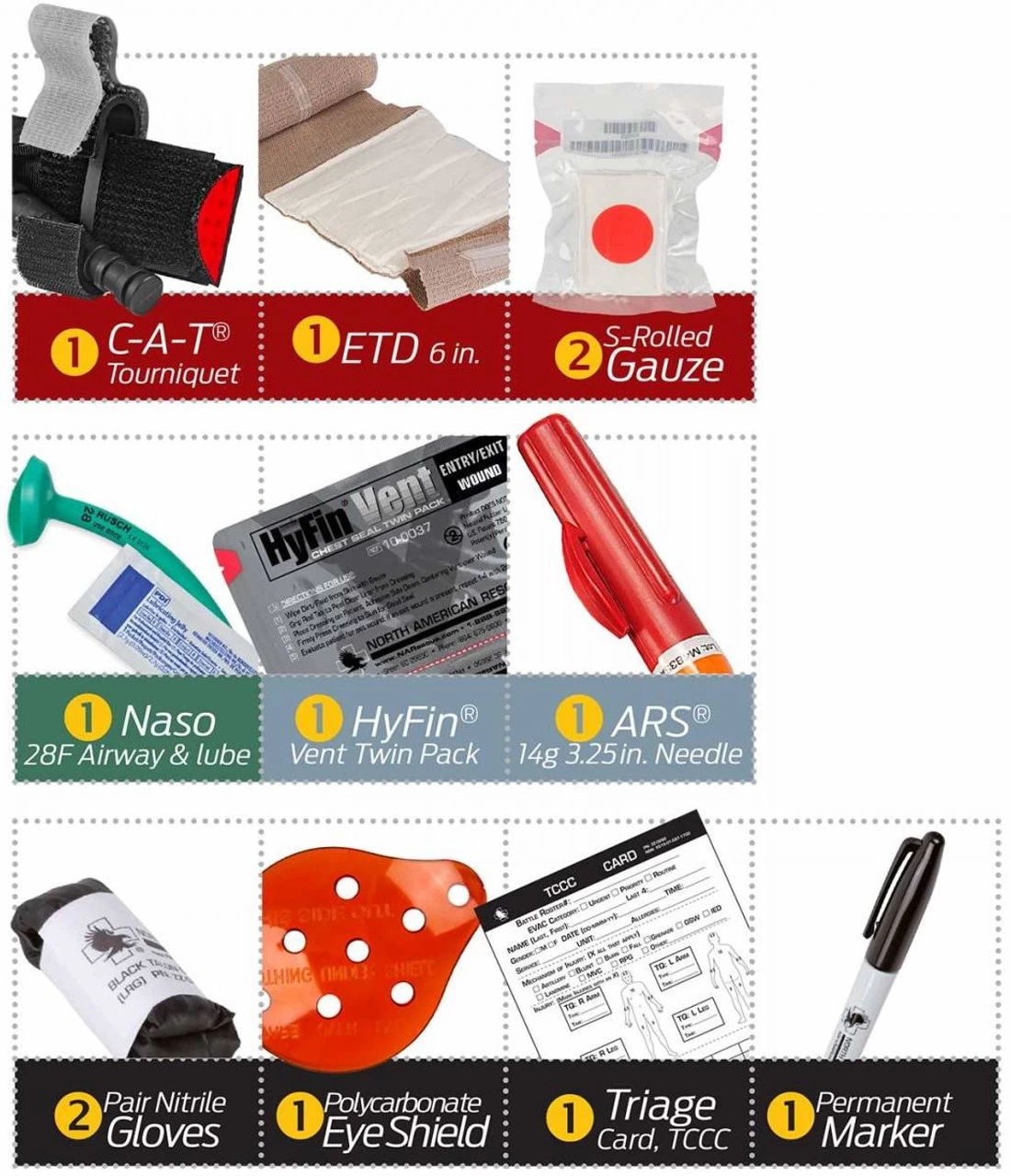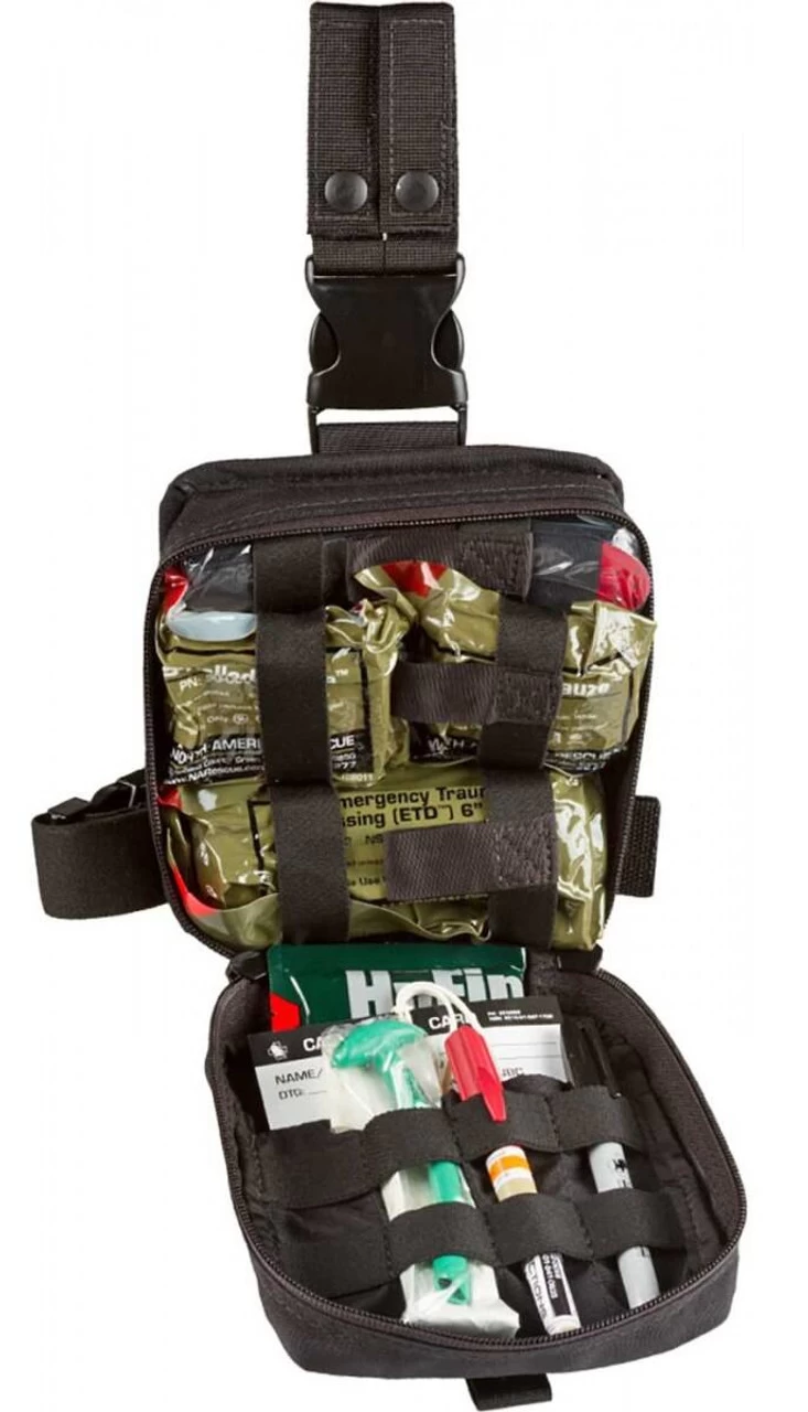 The North American Rescue S.T.O.R.M. Operator IFAK is the official kit Specialized Tactics for Operational Rescue and Medicine (S.T.O.R.M.). This IFAK is one of NAr’s smallest First Aid Kits (IFAK). It is uniquely designed to mitigate the three leading causes of preventable death in the tactical environment for penetrating trauma (60% extremity bleeding, 33% tension pneumothorax, 6% airway obstruction). This kit provides the necessary equipment for the user/operator to administer immediate self-aid/buddy-aid to injured casualties at the point of wounding. Utilizing Tactical Combat Casualty Care (TCCC) Guidelines and lessons learned from the battlefield, this kit provides law enforcement officers and other public safety personnel with the needed tools to reduce the unnecessary loss of life due to the preventable causes of death encountered in the tactical environment. Made to meet the demands of the austere environment, our modular system can be worn as a drop down leg rig, attached directly to the duty belt or attached to the assault vest or body armor with Molle/Pals-style connectors.