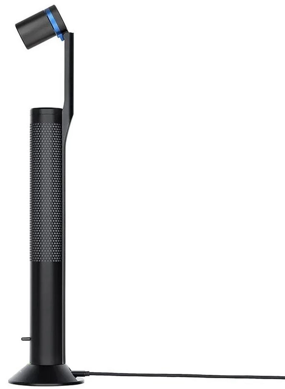 - Aluminum table lamp that combines a multi-color light stem and a detachable lamphead.