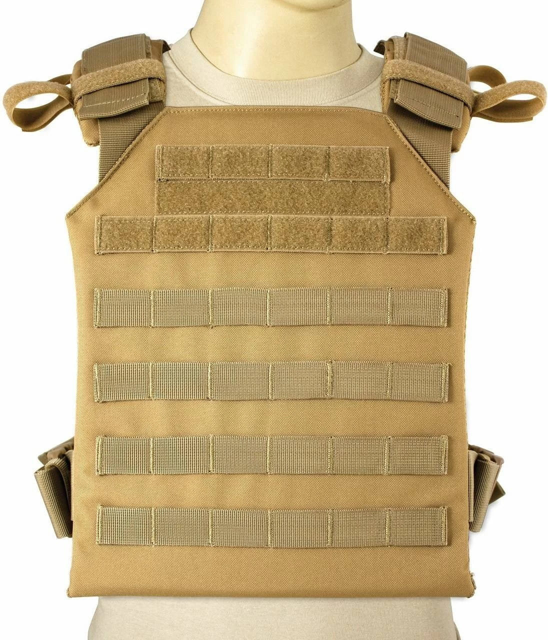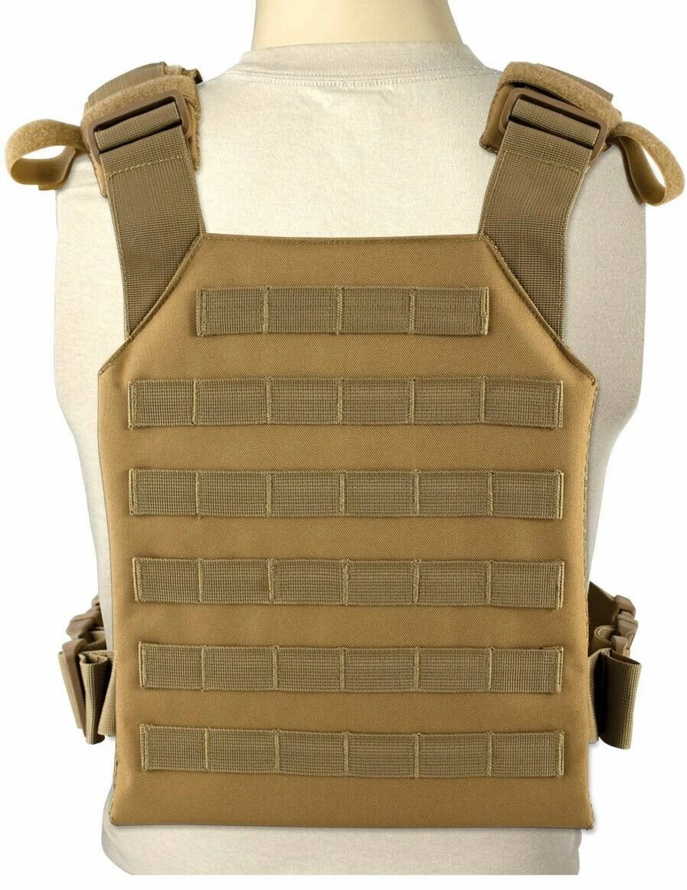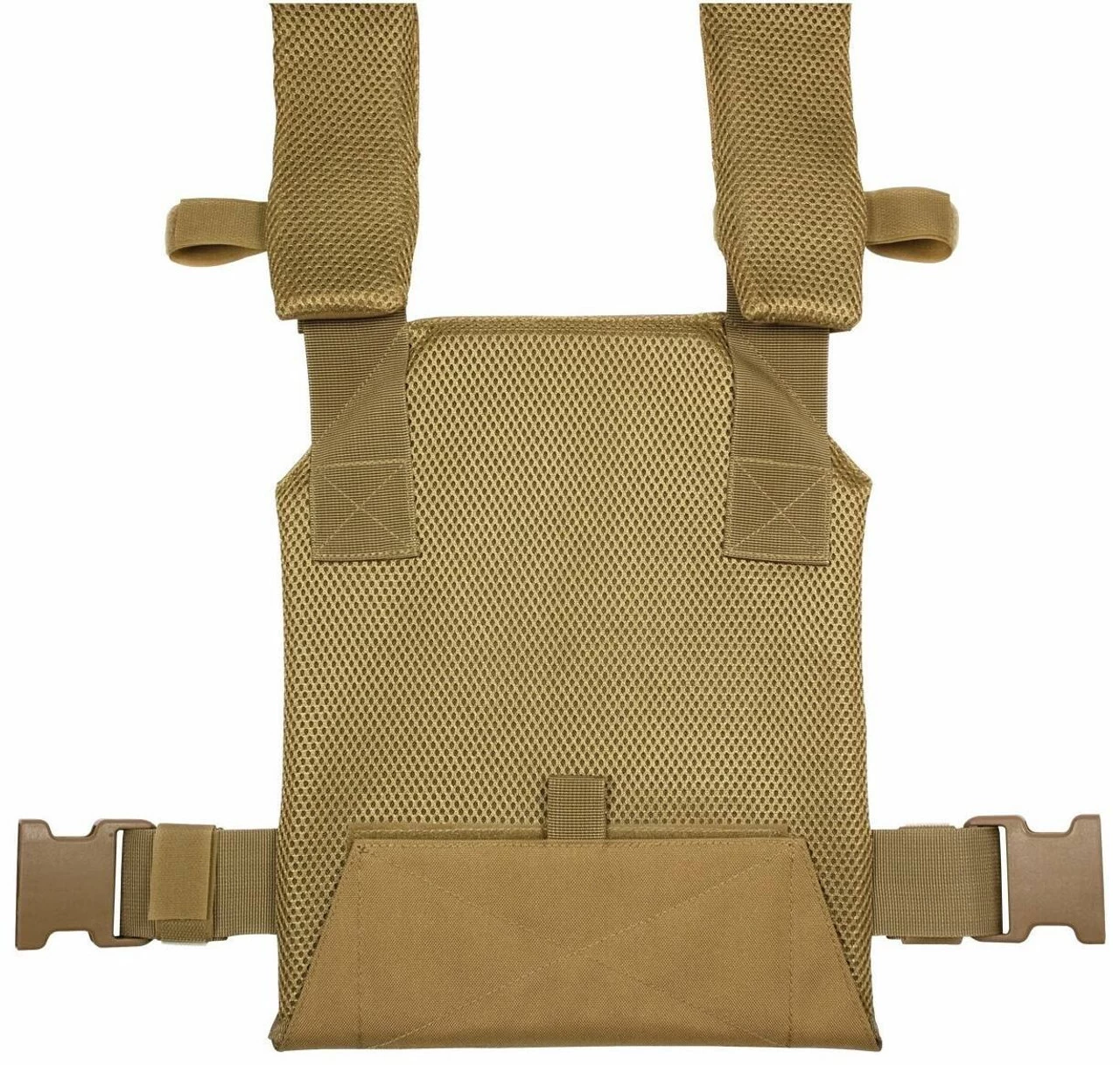 The Red Rock Outdoor Gear MOLLE Plate Carrier features a simple two-piece design that is connected by adjustable waist and shoulder straps while almost all internal parts are lined with airmesh for breathability. Each side comes with a dense open-cell foam panel which can be accessed by a touch-fastener closure on the interior side. The front and the rear are covered in MOLLE webbing for further customizability and rapid integration of additional tactical gear. The Plate Carrier is height adjustable via the padded shoulder straps.