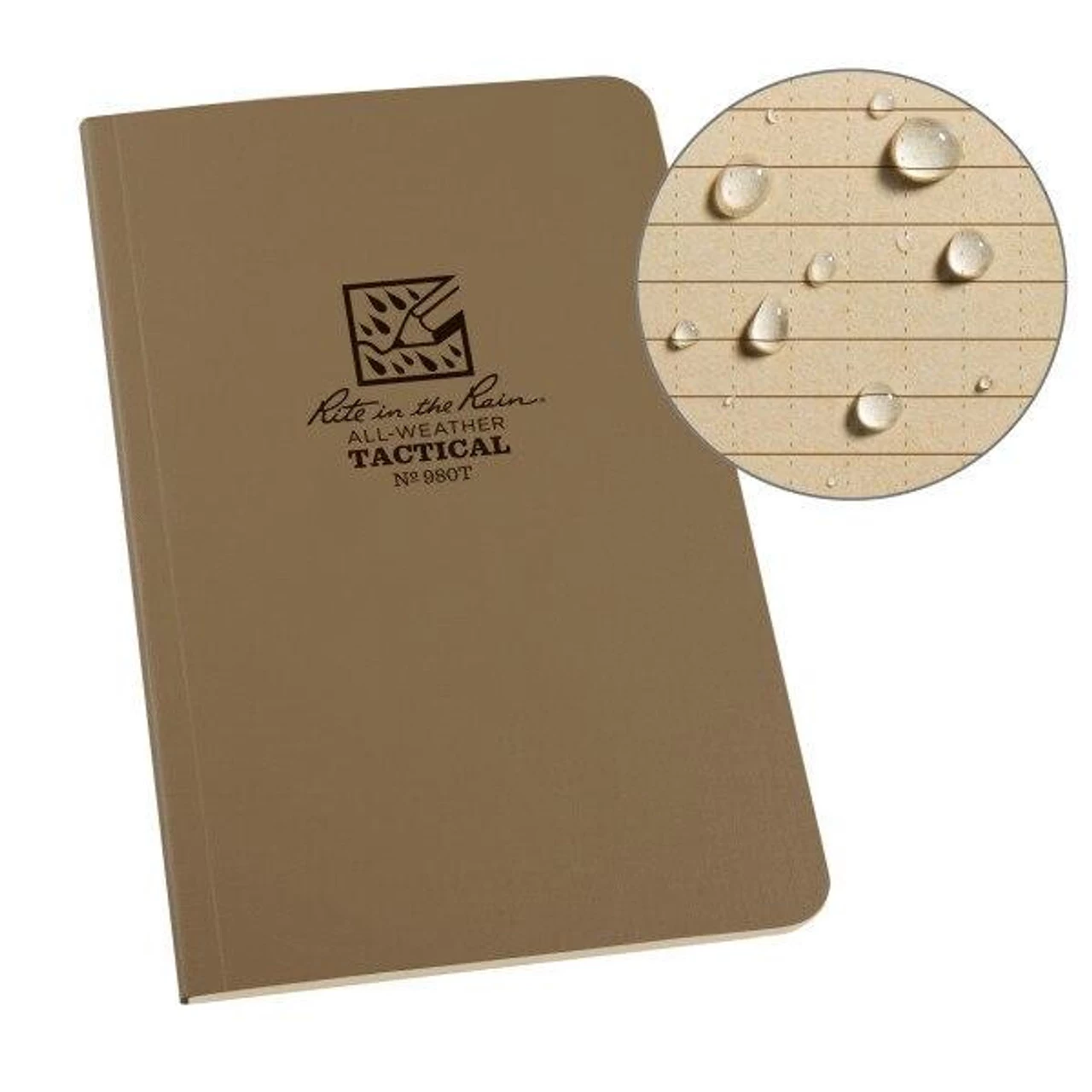 The tough Field-Flex cover will withstand the rigors of battle while fitting comfortably into your cargo pant pocket. Pages are printed on 4 5/8 in x 7 1/4 in non-glare 32# Tan Rite in the Rain All-Weather Paper. Each sheet is perforated for easy removal. Use the Universal pattern for notes and scaled drawings. The book also contains 16 pages of tactical reference material, including: Sector sketch preparation, unit symbol charts, mission graphics, call for fire procedure and much more. 160 pages (80 sheets)