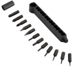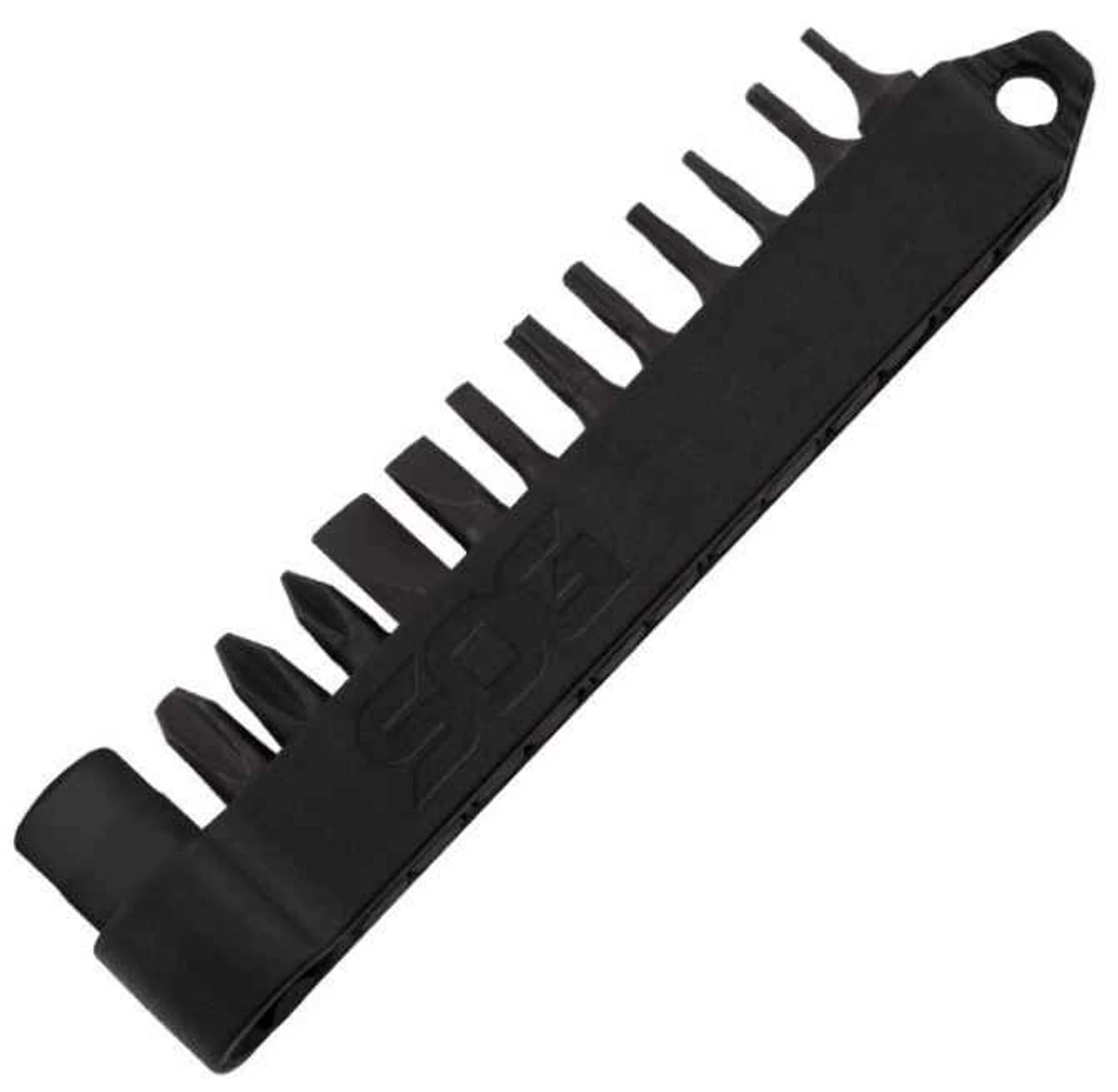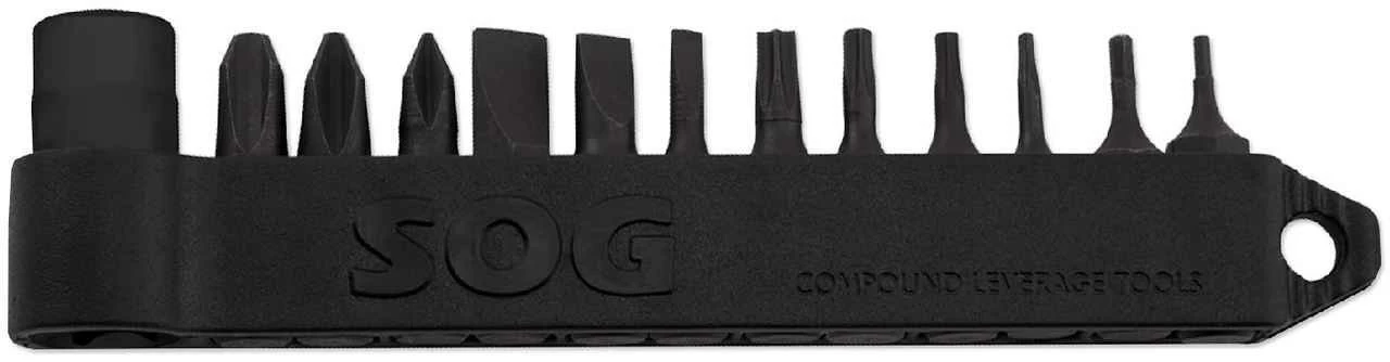 The SOG Hex bit kit for any 1/4″ driver SOG tool comes with 12 interchangeable bits (Phillips, Flathead and Star-drive) that fit most common fastener heads.