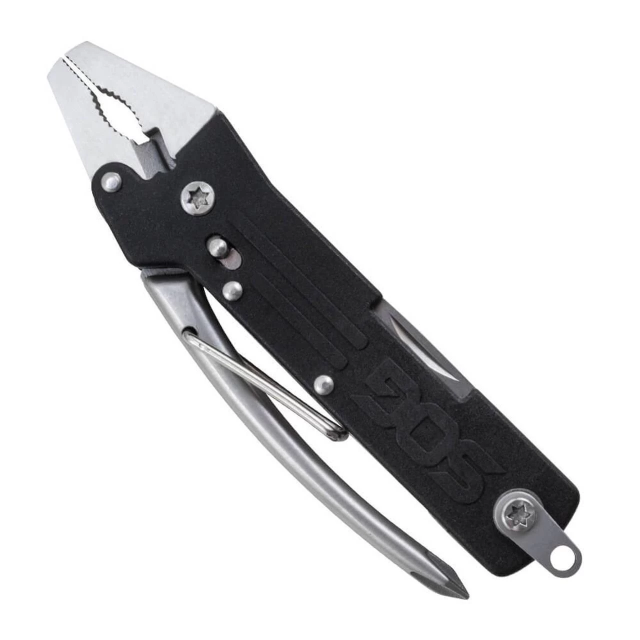 The SOG Micro Tool Clip has the essential everyday tools you need for everything from clipping thin wires, driving screws, opening bottles, and general cutting duties. The spring-loaded pliers on the Micro Toolclip are easy to use and lock closed when not in use. Components include pliers, soft wire cutter, gripper, large flat screwdriver, 2-sided file, small flat screwdriver, bottle opener, straight blade, & Phillips screwdriver all in a tool only 3.9” in length.