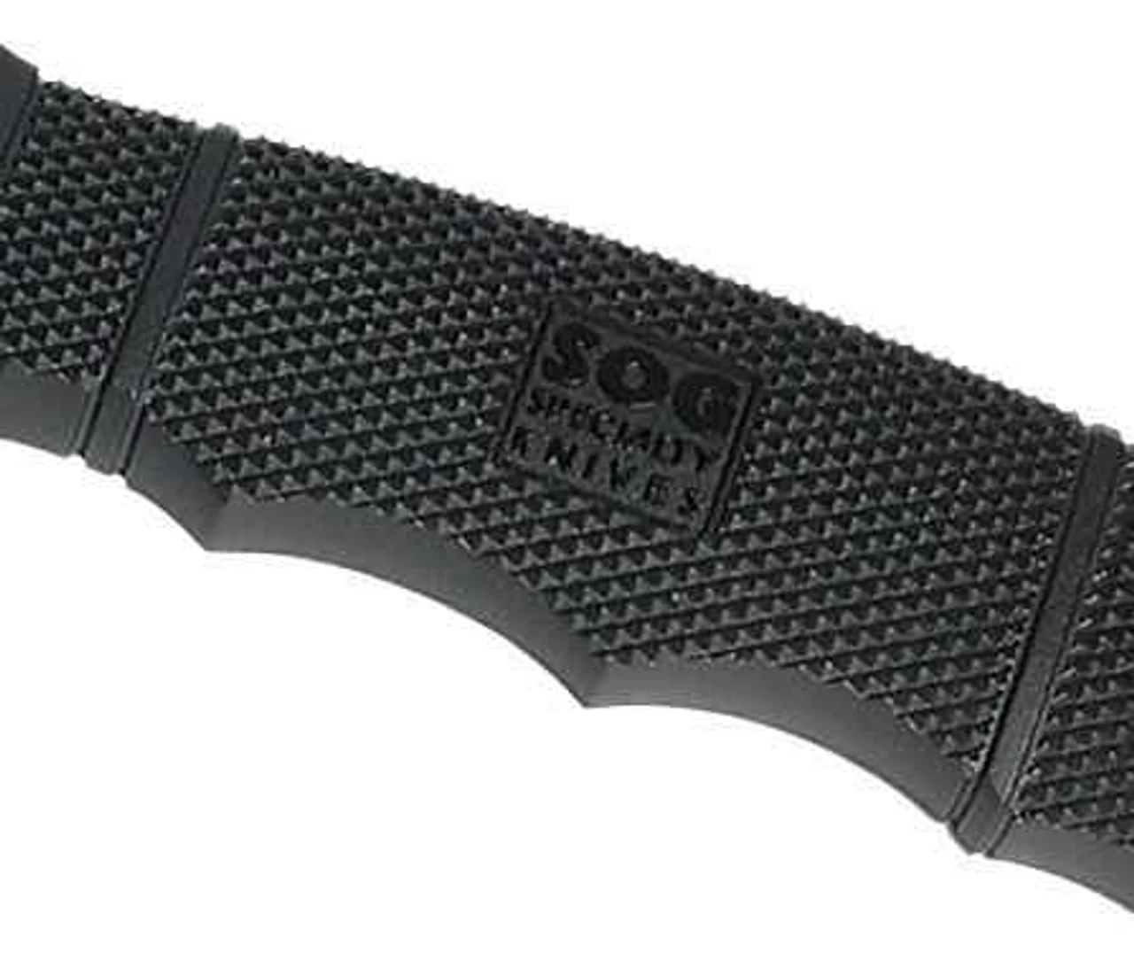 The SOG SEAL Pup Elite is the high performance edition to the SEAL family of products and carries on the tradition of supplying the world’s elite military forces. Features include hardcase Black TiNi finish or Satin, newly designed longer ergonomic handle with deeper finger grooves, racy new blade shape with longer cutting edge, added blade spine rasp for thumb placement, and an injection molded glass reinforced handle scored with grip lines.