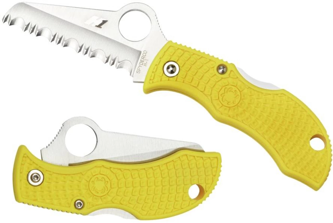 The blunt-tipped sheepfoot blade of this knife is crafted from H-1 steeI, an advanced nitrogen-based alloy that is completely immune to corrosion. Its fully serrated SpyderEdge offers extreme cutting power for its size especially on fibrous materials like rope and netting. The blade’s Trademark Round Hole unmistakably identifies it as a Spyderco product and allows easy, fingernail-free opening.