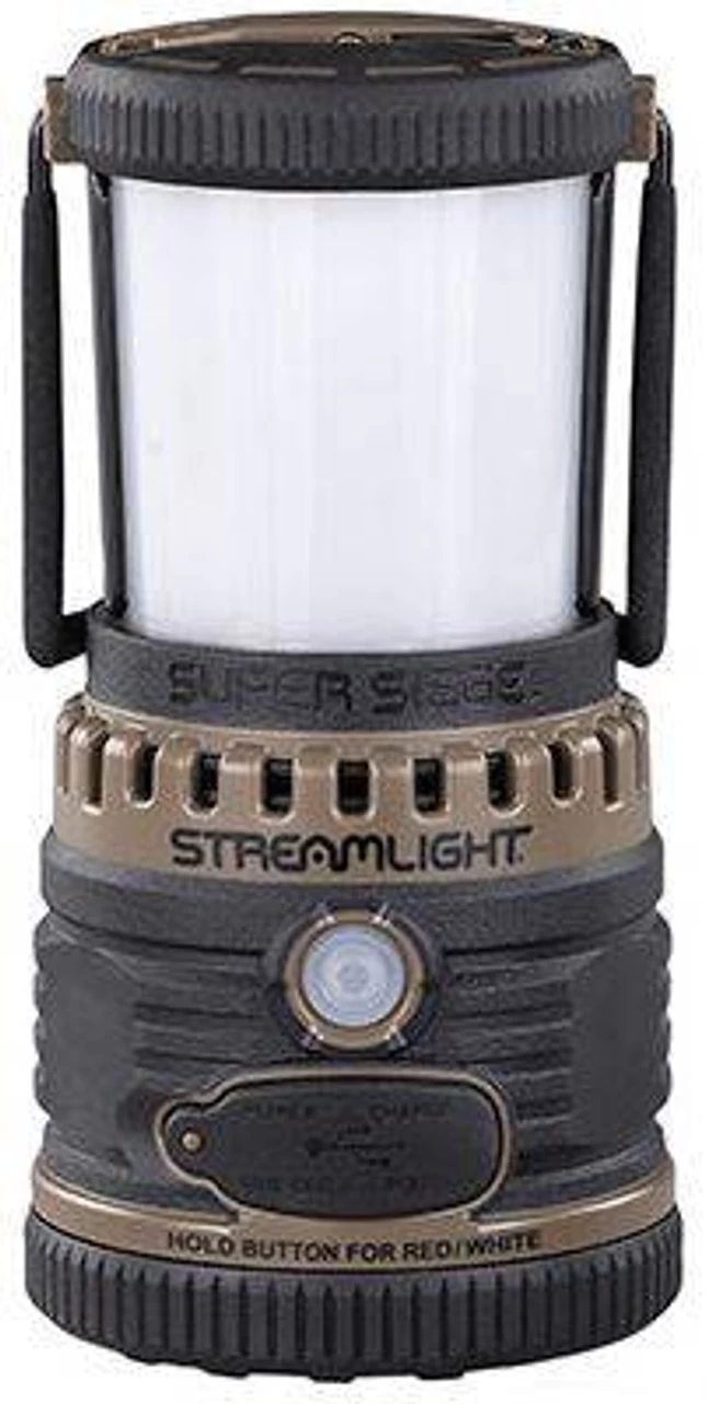 Streamlight Super Siege 1,100 Lumen Lantern is a rechargeable, 1,100 lumen scene lantern that also provides an auxiliary USB power source to charge mobile devices or other Streamlight products. The 8800mAH lithium ion battery capacity gives up to 4 full charges for most smartphones.