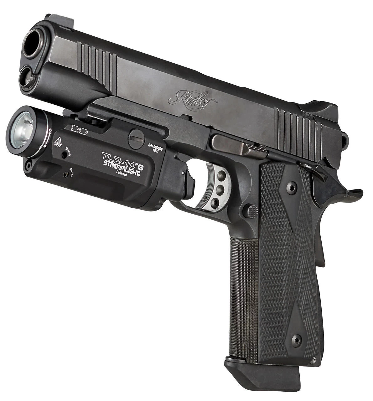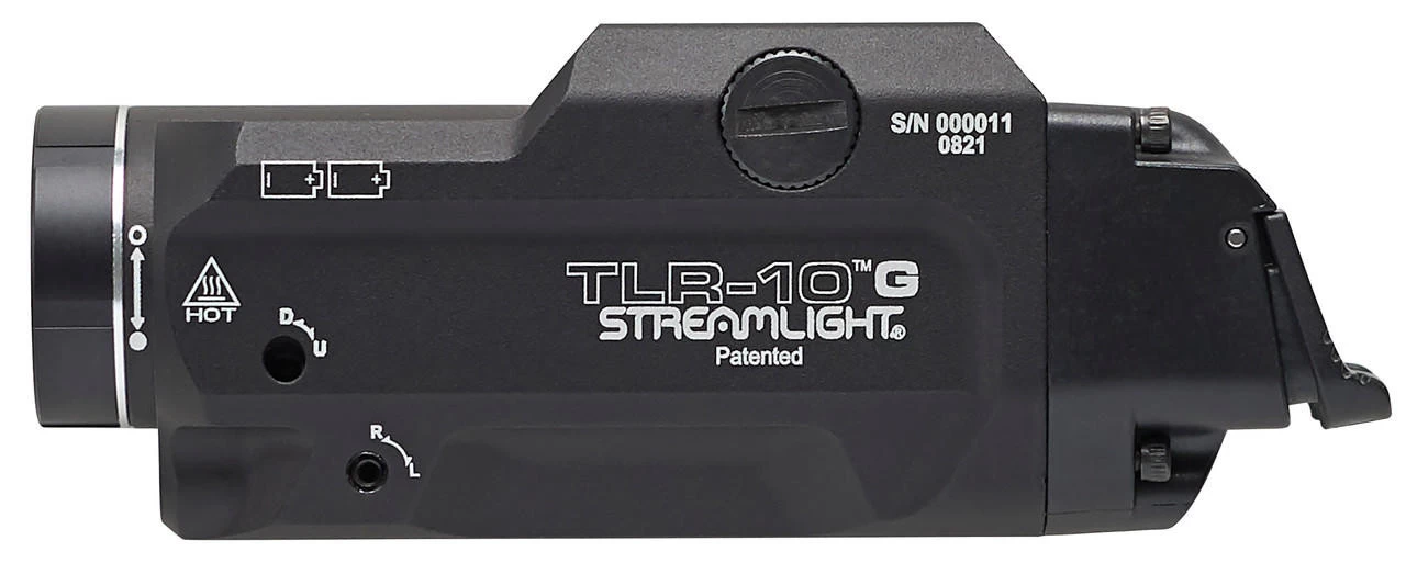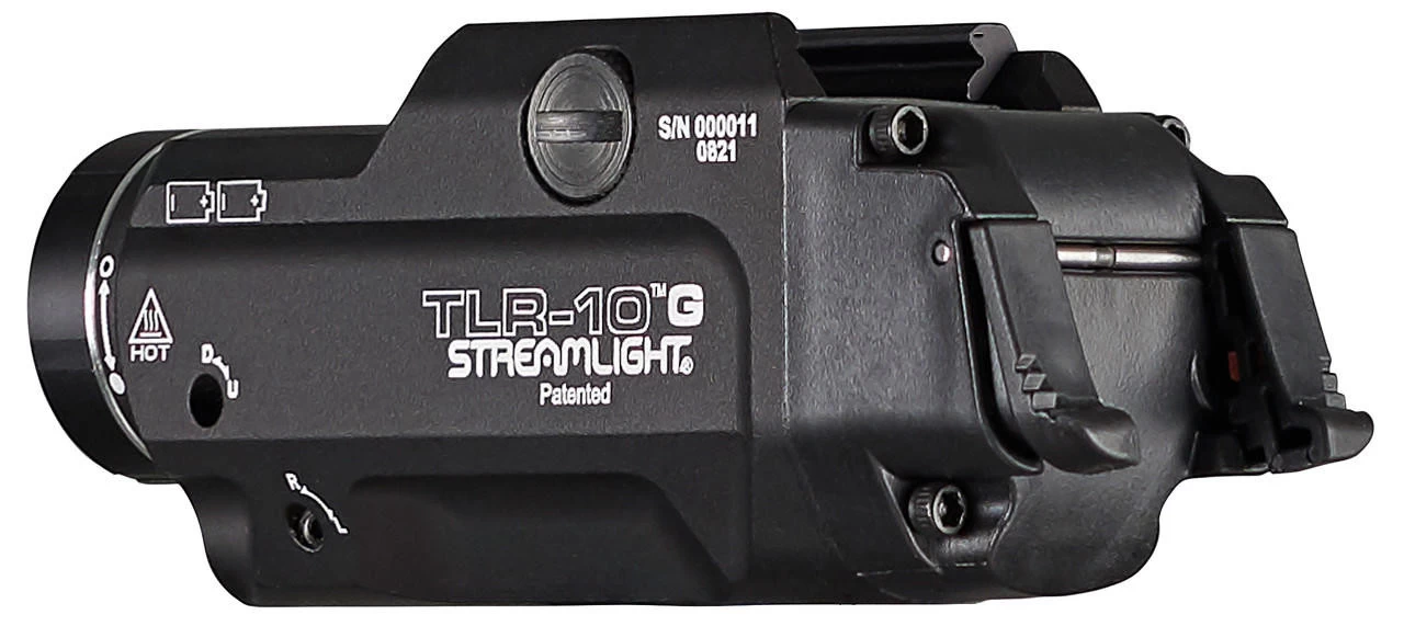 The Streamlight TLR-10 G Weapon Light with Integrated Green Laser includes customized, interchangeable, ambidextrous switches with either a low or high position to match your preferred shooting style. It features a rail clamp that is designed to rapidly attach/detach from full frame weapons.