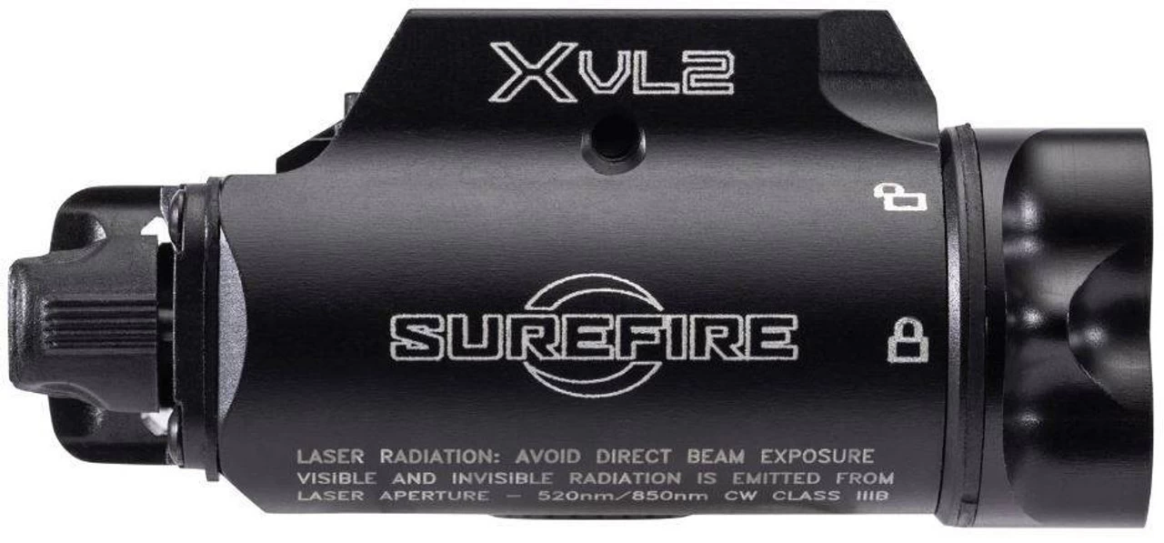 The SureFire XLV2 Weaponlight is powered by a single 123A battery and features a unique carriage system facilitates simultaneous alignment of the visible and infrared lasers via an x-axis and y-axis adjustment platform. The XVL2’s dual laser/dual emitter LED module system efficiently generates both green and IR laser aiming, and white light and infrared illumination, to maximize the efficiency and efficacy of the warfighter. The MaxVision Beam head assembly is also designed to allow battery changes without removal/re-zeroing of the laser module.