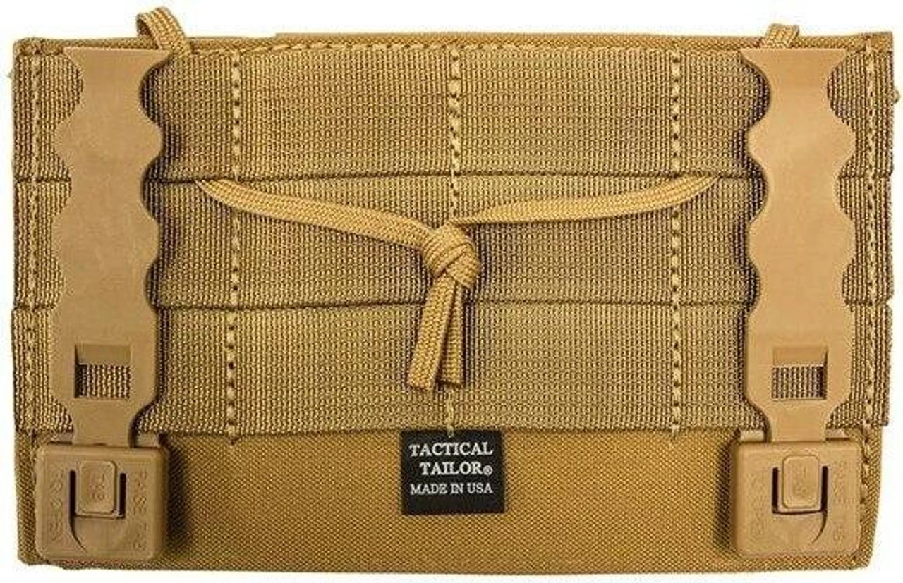The Tactical Tailor Cell Phone Holder Chest Desk is the answer to the need for an afforable yet modular pouch to match LEO/MIL increasing use of smartphones and tablets. This affordable yet modular, lightweight and low profile flip down velcro panel allows for velcro backed devices to be attached securely to the inside panel of a desk. The face has a loop that allows the attaching of IFF and Morale Patches. 4 columns and 4 rows of MOLLE/PALS Webbing fits perfectly to the chest of plate carriers and chest rigs.