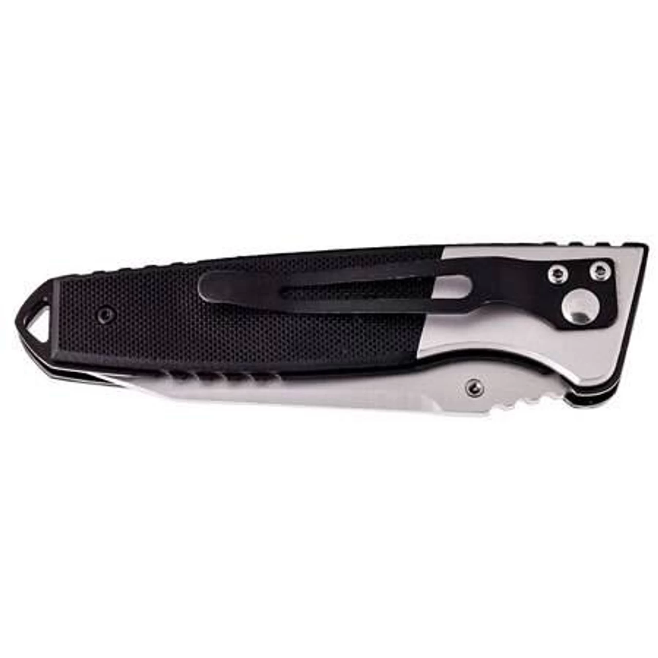 Uzi Responder V. 4 3/8″ closed linerlock. 3 1/8″ matte finish assisted opening stainless tanto blade with thumb stud and thumb ridge. Black G-10 handles with matte finish aluminum bolster. Lanyard hole. Black stainless pocket clip with slot cutout design.